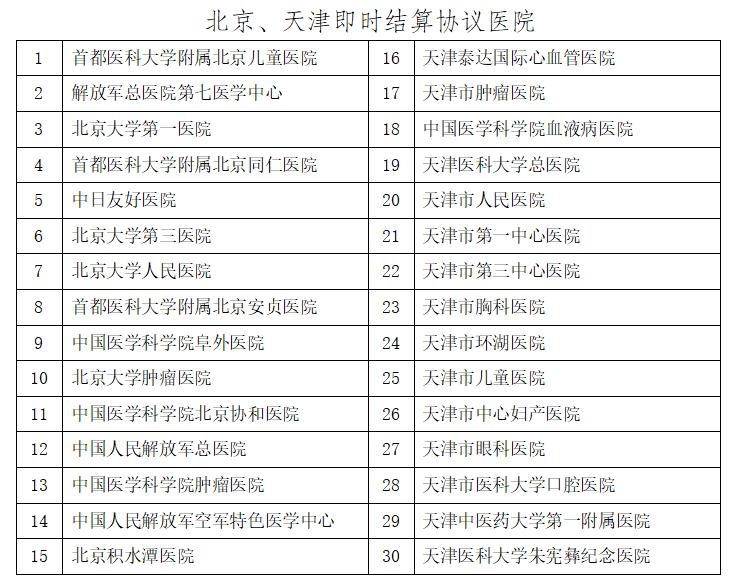 十、北京、天津開通即時結(jié)算協(xié)議醫(yī)院有哪些?